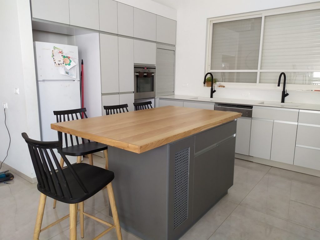 המטבח של אביעד ונאורה מטבח ח עם אי חזיתות פולימר